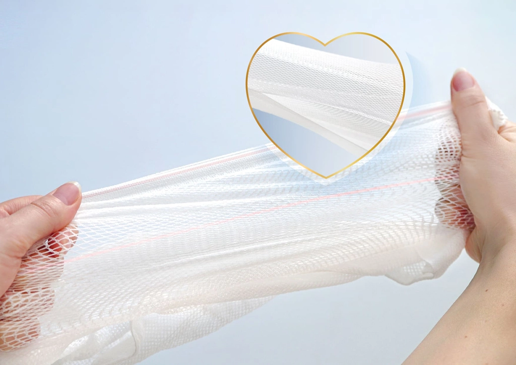 A finom, rugalmas, zavaró varrásoktól mentes konstrukció csökkenti a dörzsölést és a nyomást, mérsékelve az irritáció vagy a kidörzsölődés kockázatát.