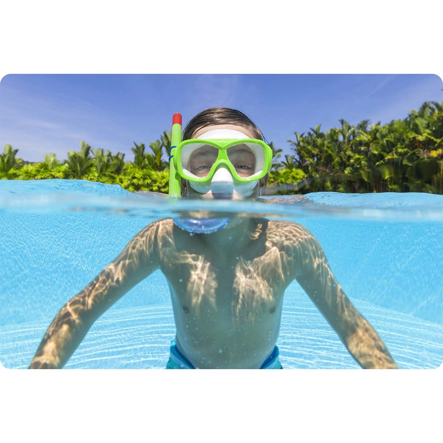 Élvezd a nyarat teljes gőzzel a zöld színű BESTWAY snorkelkészlettel. A szett tartalmaz egy maszkot polikarbonát lencsékkel és UV-védelemmel, valamint egy snorkelt kényelmes szilikon szájrésszel. A széles látómezőnek, a vízzáró illeszkedésnek és az állítható pántnak köszönhetően kiváló kilátást és kényelmet kapsz. A snorkel felső fröccsenésgátlóval rendelkezik, a szájrész latexmentes és kellemes a szájnak.
