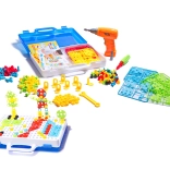 Fantasztikus építőkészlet kis ezermestereknek! A készlet 237 darabot tartalmaz, amelyek lehetővé teszik különböző alakzatok és modellek létrehozását. A gyerekek játszhatnak színes csavarokkal, és a fúró segítségével kipróbálhatják, milyen is igazi építőnek lenni.