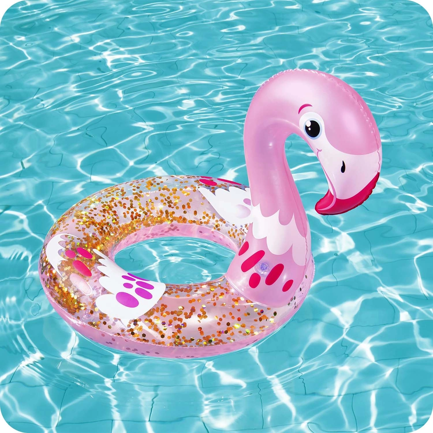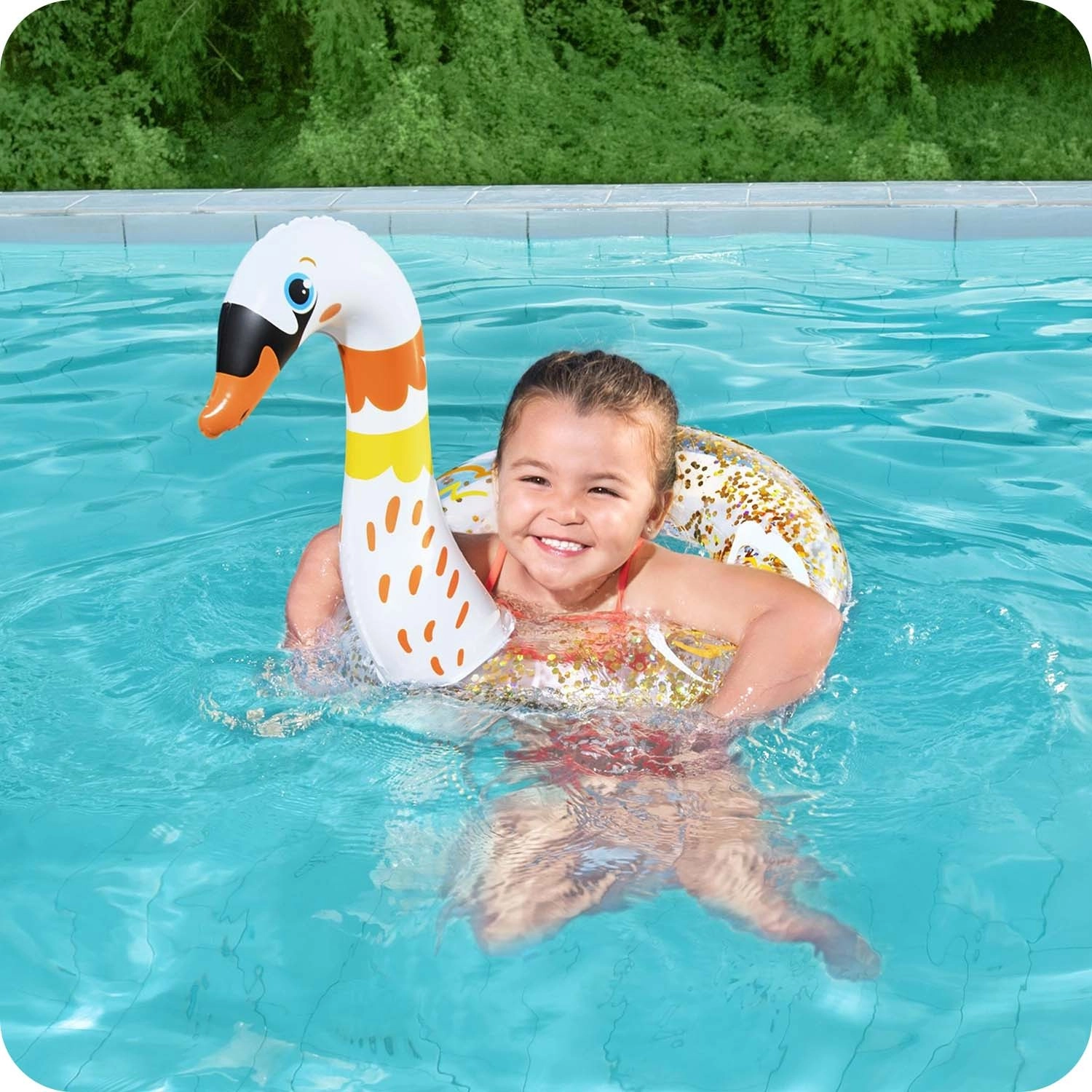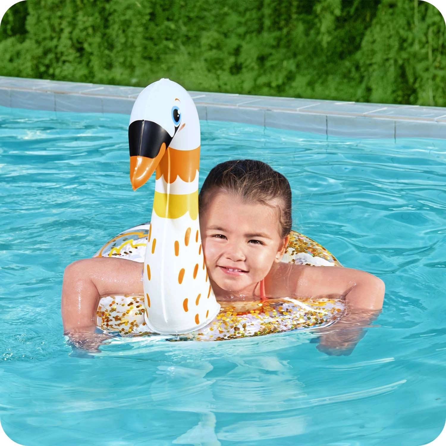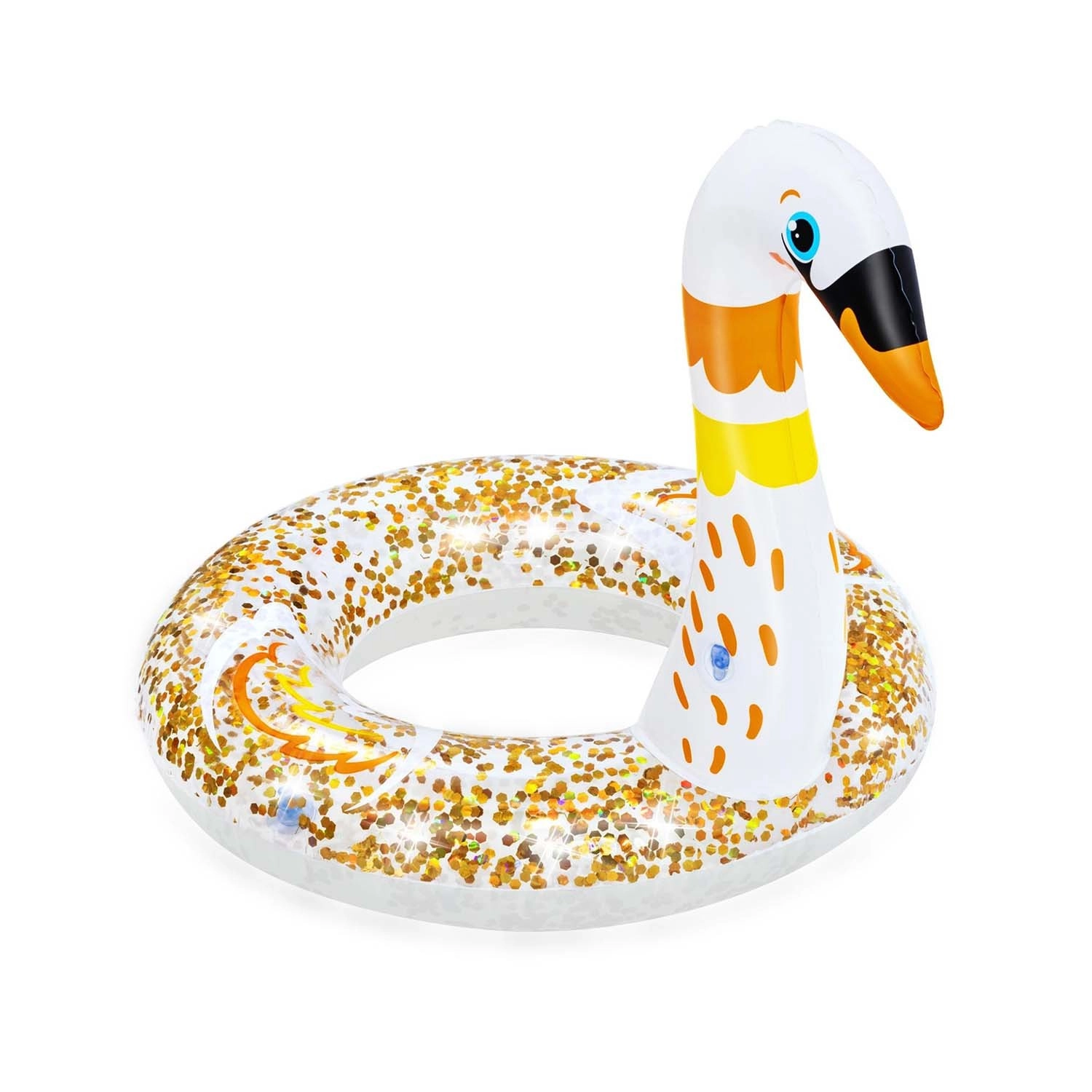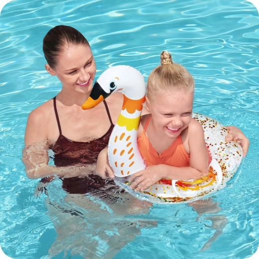 A BESTWAY felfújható úszógumi minden fürdőzést szórakozássá varázsol. A hattyú vagy flamingó élethű formája azonnal megragadja a gyerekek figyelmét, és mozgásra ösztönzi őket a vízben. Az átlátszó részekben lévő arany csillámok gyönyörűen csillognak a napon, egyedi megjelenést kölcsönözve a gyűrűnek.