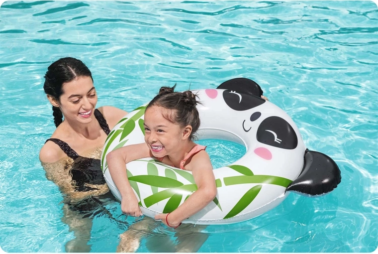 A panda felfújható úszógumi remek vízi játszótárs a legkisebbeknek. A cuki fülecskékkel és bambusz motívumokkal díszített megjelenésnek köszönhetően a gyerekek megszeretik a pancsolást, a szülők pedig értékelik a biztonságosabb és kényelmes támaszt a vízzel való ismerkedéskor.