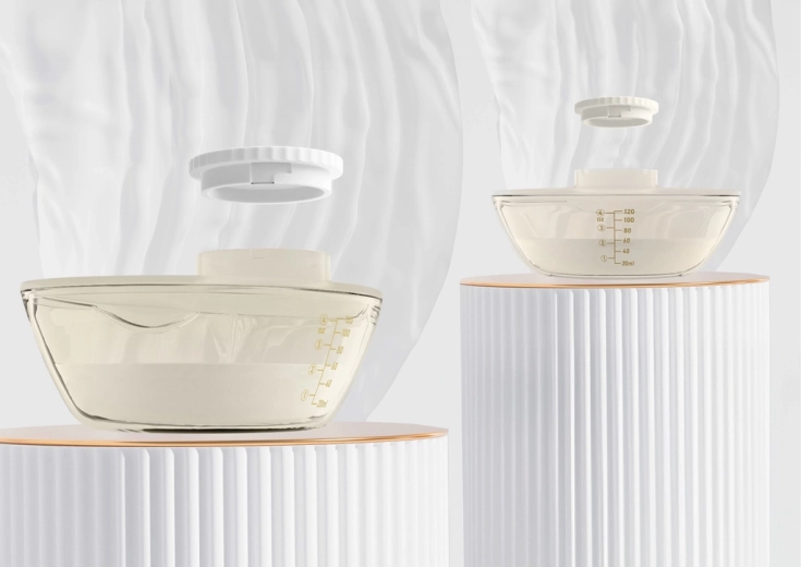 A 105°-os szögű mellpajzs természetesen öleli körül a mellet a jobb tejáramlásért. Az átlátható skála az edényen megkönnyíti a mennyiség követését.