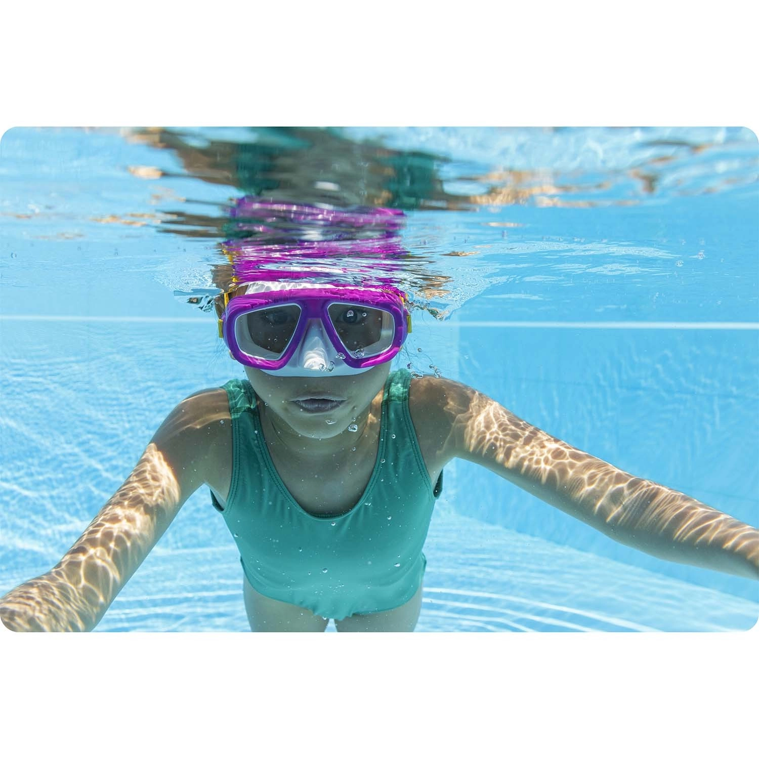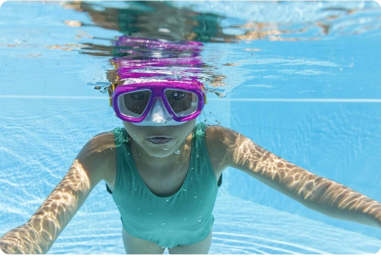 A rózsaszín BESTWAY úszó- és sznorkelmaszk ideális medencébe és tengerbe. A tartós polikarbonát lencsék UV-szűrővel védik a szemet és tiszta kilátást nyújtanak. Az univerzális méret rugalmas arcrésszel a legtöbb arcformához igazodik, és minimálisra csökkenti a víz bejutását.