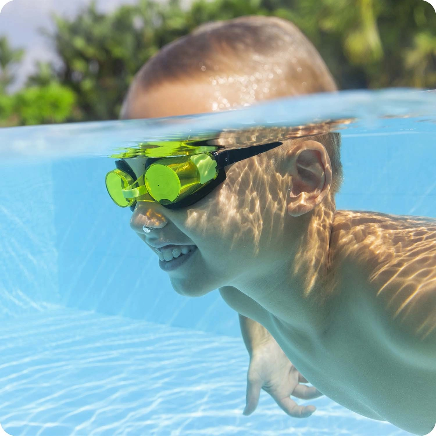 Az UV-álló lencséknek köszönhetően kültéri medencékben is megfelelő. A hipoallergén, latexmentes anyagok csökkentik az irritáció kockázatát, míg a masszív kialakítás és a tiszta látómező segít jobban látni a víz alatt és a mozgásra összpontosítani.
