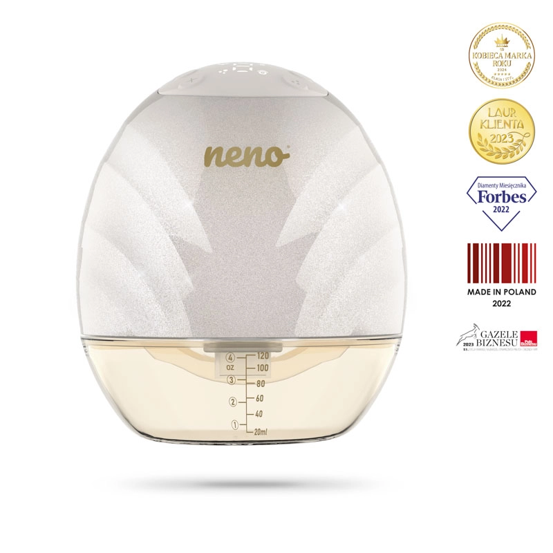 A Neno Perla egy kompakt, vezeték nélküli mellszívó, amelyet kényelmes, diszkrét és hatékony fejésre terveztek bárhol és bármikor. Közvetlenül belefér a szoptatós melltartóba, így fejés közben teljesen szabadon maradnak a kezei. 3 fejési fázist kínál 9 intenzitási szinttel, 105°-os szögű, anatómiai mellpajzzsal a jobb tejáramlásért, valamint akár 120 perc üzemidővel egyetlen töltéssel.