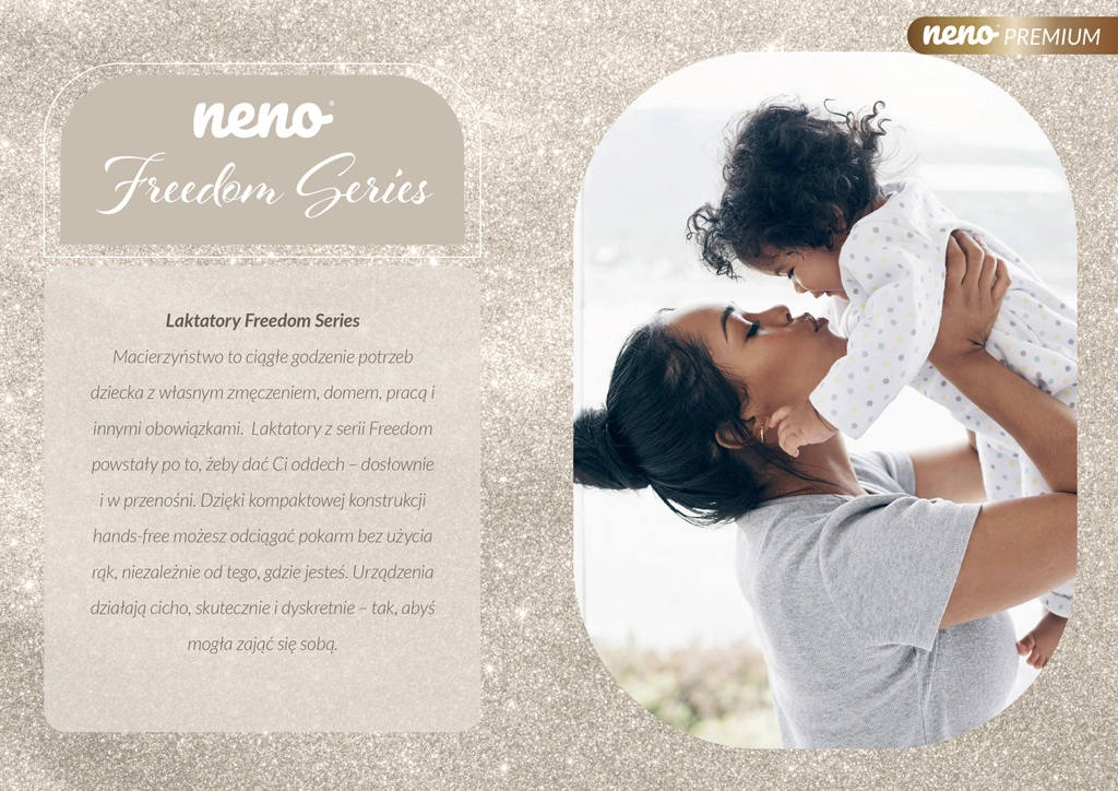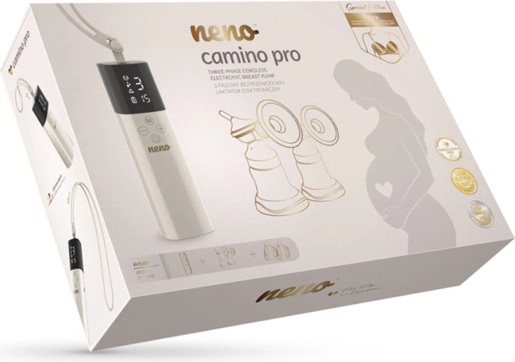 A Freedom sorozatba tartozó Neno Camino Pro a dupla elektromos mellszívó teljesítményét ötvözi a könnyű, vezeték nélküli kialakítással és az ergonomikus, puha tölcsérekkel. A háromfázisú üzem a baba szopómozgását utánozza – a gyengéd stimulációtól a mély fejésen át a kettő kombinációjáig – a magasabb hozam és a laktáció támogatása érdekében. A beépített időzítő, az áttekinthető kijelző és az érintésvezérlés lehetővé teszi, hogy mindent egy kézzel felügyeljen.