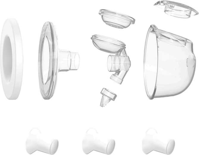 A csomag tartalmaz egy komplett készletet a üveges fejéshez és a hands‑free gyűjtéshez a diszkrét, 240 ml-es tartályokba, amelyek elférnek a standard szoptatós melltartóban. A zárt rendszer védi a tejet a visszafolyástól és a szennyeződéstől. A széles mellbimbóvédő-szűkítők választéknak (akár 7 méret) köszönhetően könnyen megtalálja a tökéletes illeszkedést nyomás és kényelmetlenség nélkül.