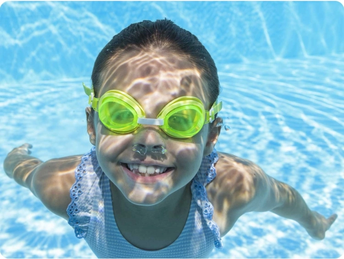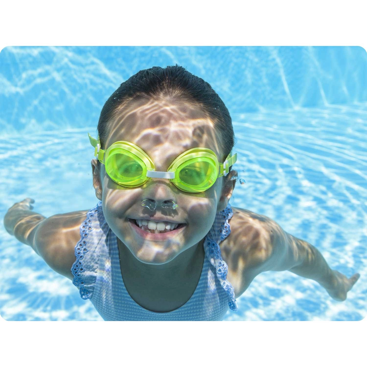 Könnyű és kényelmes Bestway gyerek úszószemüveg zöld színben, amely tiszta kilátást biztosít a víz alatt és védelmet nyújt az UV-álló lencséknek köszönhetően. A puha szilikonpánt teljesen állítható a biztonságos és komfortos illeszkedésért, latexmentes anyagokból – ideális 7 éves kortól.