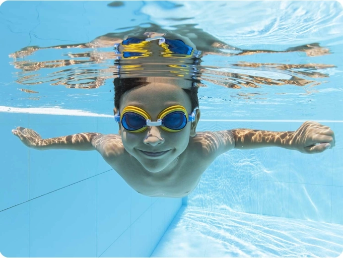 Az UV-védelemmel ellátott lencsék segítenek óvni a gyermekek szemeit szabadtéri úszásnál, és javítják a látást a víz alatt.