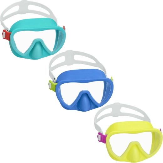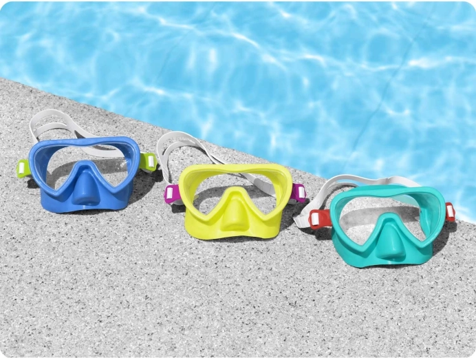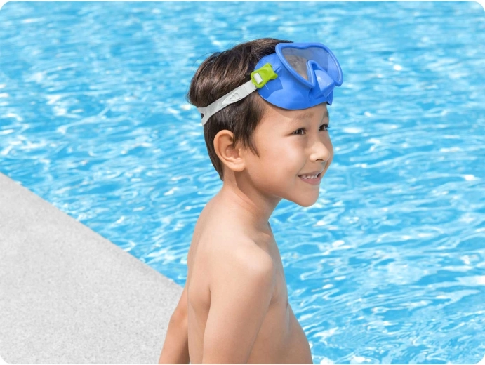 Fedezd fel a víz alatti világot a könnyű és kényelmes Bestway maszkkal, amelyet a gyerekek arcához illeszkedő tapadásra és stabil tartásra terveztek úszáshoz és sznorkelezéshez egyaránt. A tartós UV-védelemmel ellátott polikarbonát lencse óvja a szemet és kristálytiszta látást biztosít, míg a széles látómező segít többet látni a víz alatti világból.