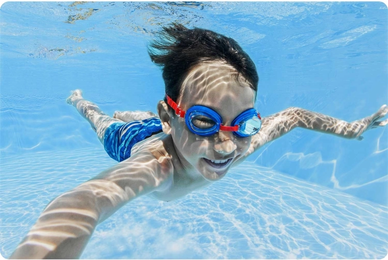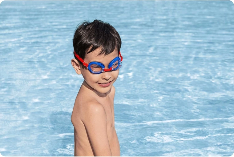 Az átlátszó, hipoallergén lencsék jó víz alatti láthatóságot biztosítanak, az UV-védelem pedig segít óvni a gyerekek szemét napfényes úszás közben.