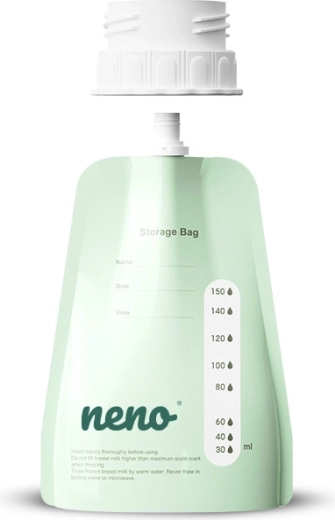 A 150 ml űrtartalmú Neno anyatejtároló tasakok lehetővé teszik a higiénikus fejést közvetlenül a tasakba, biztonságos, hermetikus zárást és a megbízható fagyasztást akár 6 hónapig. A Neno mellszívókkal való kompatibilitásnak, a mércének és a név, dátum, idő mezőknek köszönhetően mindent kézben tarthat – otthon és útközben is.