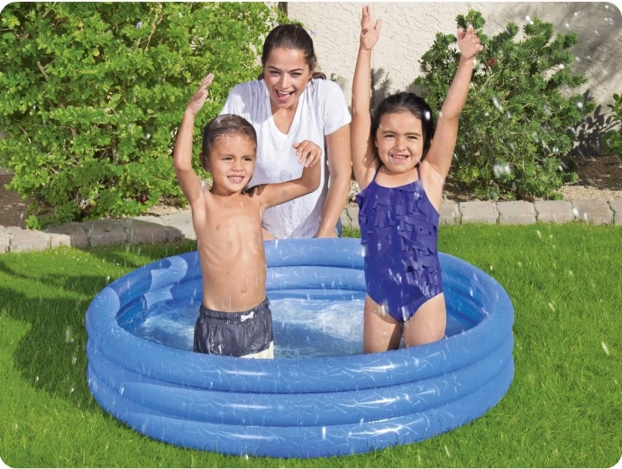 A tartós PVC anyag bírja a mindennapos használatot, és kisebb balesetek esetén jól jön a mellékelt javítófolt. Az egyszerű felfújás és leeresztés megkönnyíti a kezelést és a tárolást. A medence 2 éves kortól, felnőtt felügyelete mellett ajánlott.