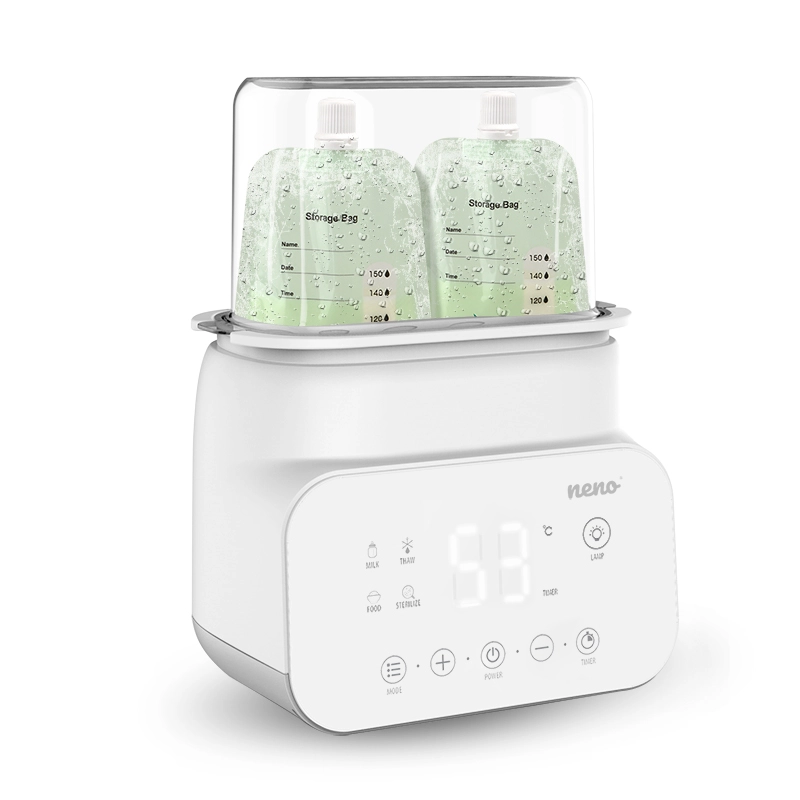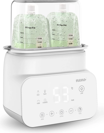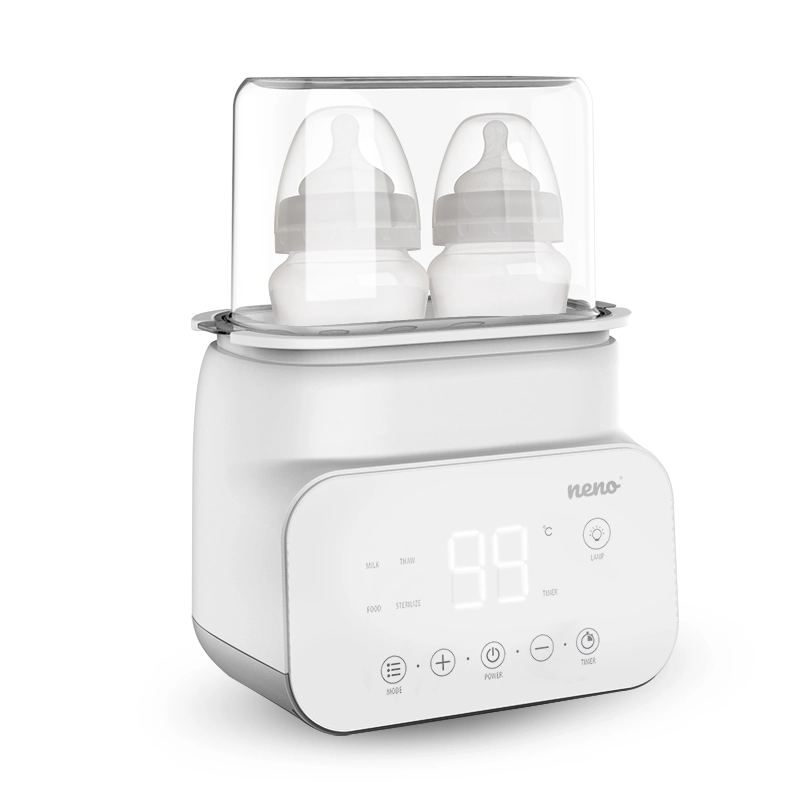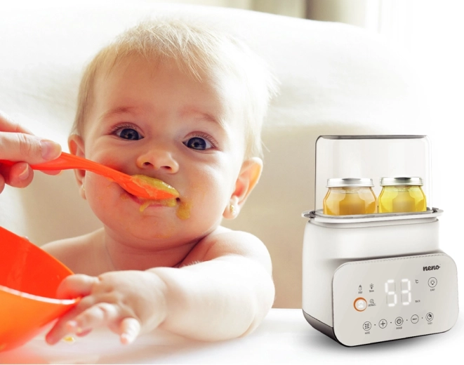 Tedd egyszerűbbé a babagondozást a Neno Vita 5 az 1-ben készülékkel – egy okos segítőtárssal, amely sterilizál, tejet melegít, ételt melegít, kiolvaszt és állandó hőmérsékleten tart. A áttekinthető LCD-kijelzőnek, a érintőgomboknak és a modern, minimalista dizájnnak köszönhetően mindent gyorsan, biztonságosan és kényelmesen intézhetsz – a tej előkészítésétől az üvegek és cumik higiénikus sterilizálásáig.
