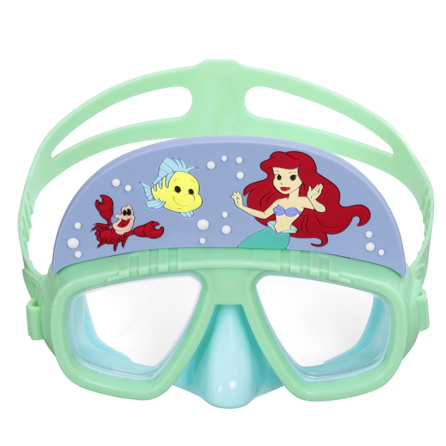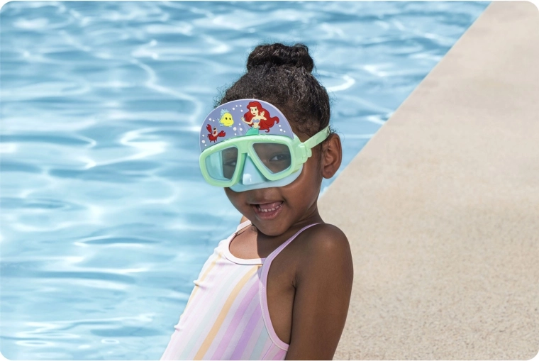 Ez a bájos gyerekmaszk Ariel, Flounder és Sebastian motívumaival készült, azoknak a kis úszóknak, akik biztonságosan szeretnék felfedezni a vízi világot. A ütésálló polikarbonát lencsék jó láthatóságot biztosítanak és védik a szemeket, míg a puha perem kellemesen illeszkedik az arcra és minimalizálja a víz bejutását.