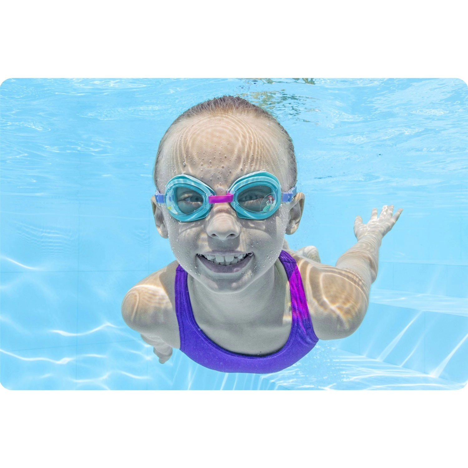 Az ergonomikus forma illeszkedik az arcra, a puha szilikon tömítés pedig megakadályozza a víz bejutását. Az állítható szilikonpánt gyors és pontos beállítást tesz lehetővé, így a szemüveg a helyén marad még vízi mókázás közben is. A vidám, ARIELKA motívumú dizájn lelkesíti a gyerekeket és kedvet csinál az úszáshoz.