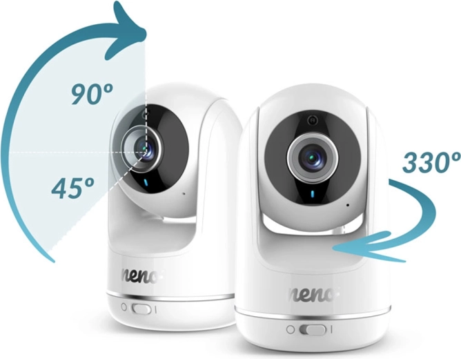 A forgatható kamera vízszintes és függőleges döntéssel, valamint praktikus zoommal átfogó rálátást ad a kiságyra és a környezetre. Választható fali szerelés vagy rugalmas rögzítőkar. A szobahőmérséklet követése, a hangszintet jelző LED és akár 4 kamera csatlakoztatása a Neno Vistát sokoldalú választássá teszi minden háztartásban.