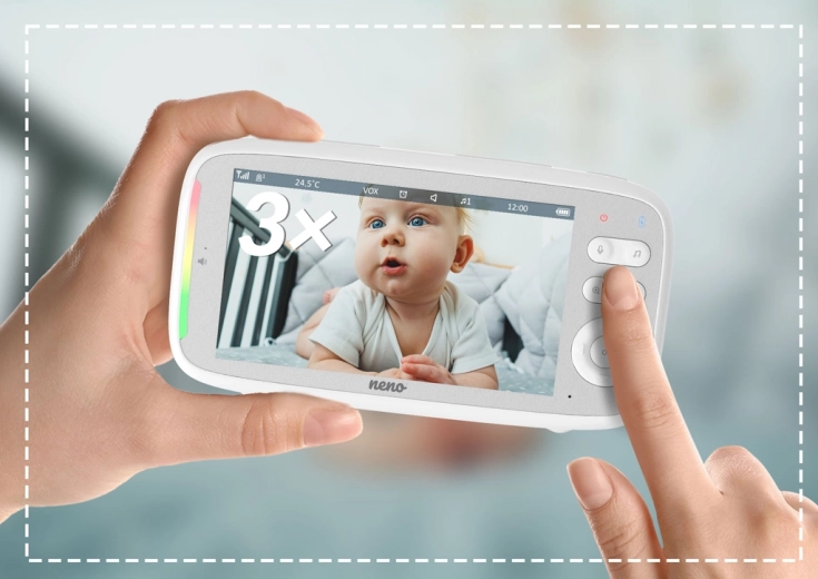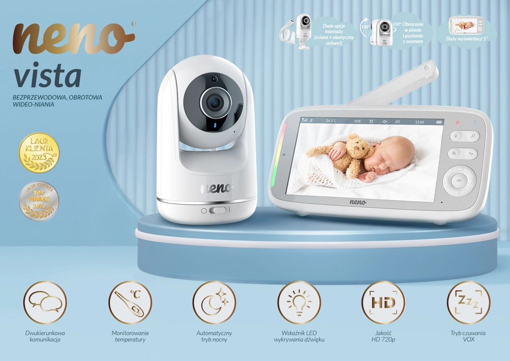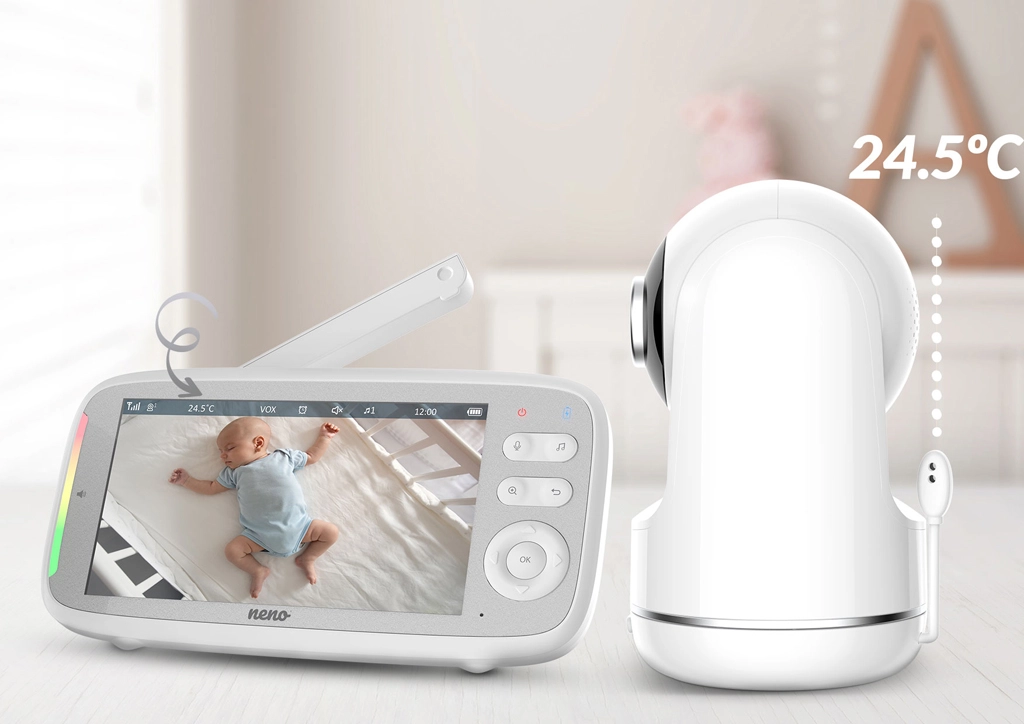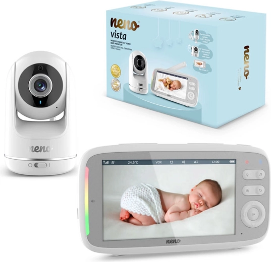 Tartsa szem előtt kisbabáját éjjel-nappal a Neno Vista babaőrzővel. Kínál nagy, 5"-os kijelzőt, HD 720p képet, éjjellátást, kétirányú kommunikációt és VOX energiatakarékos módot. A vízszintes és függőleges kameraelfordításnak, a hőmérséklet-figyelésnek és a hangszintet jelző LED-nek köszönhetően otthon és a kertben is nyugodt lehet.