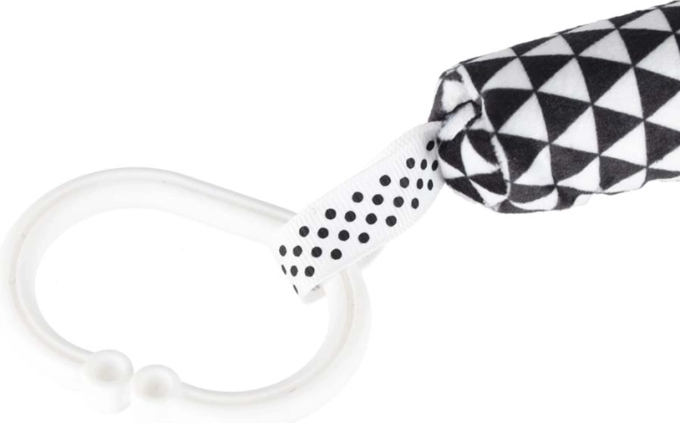 A univerzális gyűrű/klip segítségével a játék könnyen rögzíthető a babakocsira, kiságyra vagy hordozóra, így a kicsi kedvenc érzékszervi játéka mindig kéznél lesz – otthon és útközben is. A csörgő és susogó részletek serkentik a hallási stimulációt, míg a különböző textúrák támogatják a tapintást és fejlesztik a fogást.