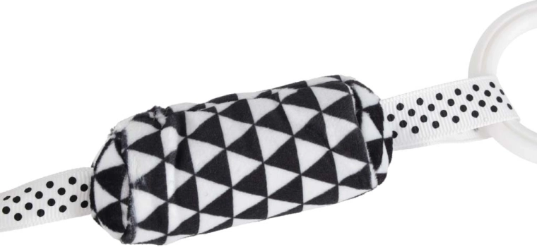 A praktikus klip/gyűrű gyors rögzítést tesz lehetővé a babakocsi tolókarjához, az autósüléshez vagy a kiságy pereméhez. Így a játék mindig kéznél marad.
