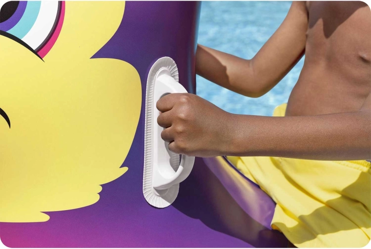 Két integrált fogantyú könnyíti meg a felülést és a kapaszkodást a vízen, így a gyerekek biztonságosabban érezhetik magukat és jobb a stabilitás.