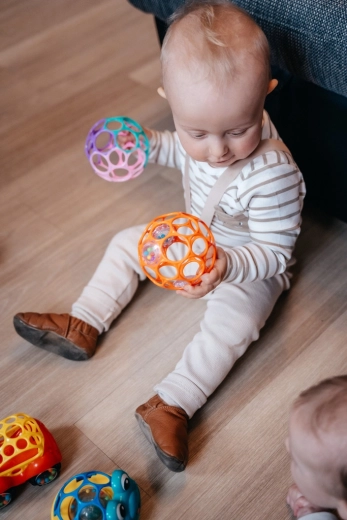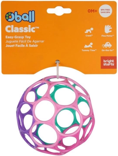 Az OBALL Classic egy közkedvelt szenzoros játék, amelyet a legkisebbek számára terveztek. A könnyű, rácsos kialakítás 32 nagy nyílással minden szögből megkönnyíti a megfogást, erősíti a finommotorikát és felfedezésre ösztönzi a babát. A puha, rugalmas anyag kíméletes az ínyhez, és biztonságos a mindennapi játékhoz.