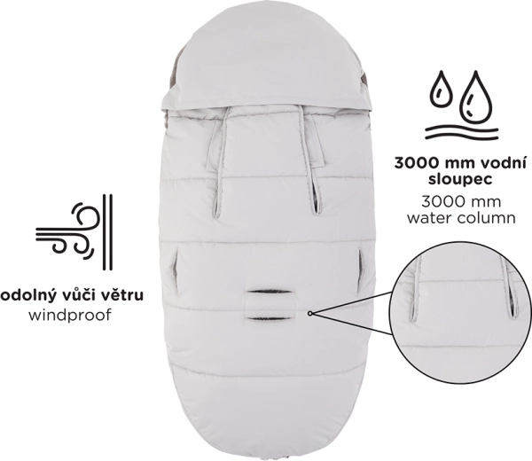 A PETITE&MARS Comfy Veritable 4 az 1-ben bundazsákot az őszi és téli séták alatt nyújtott maximális kényelemre és védelemre tervezték. A 3000 mm vízoszlopnak és a szélálló anyagnak, valamint a környezetbarát BIONIC-FINISH ECO impregnálásnak köszönhetően a gyermek kedvezőtlen időben is szárazon és melegen marad. Az univerzális szabás a függőleges övnyílásokkal széles körű babakocsi-kompatibilitást garantál, beleértve a speciális hevederrendszerű modelleket is.