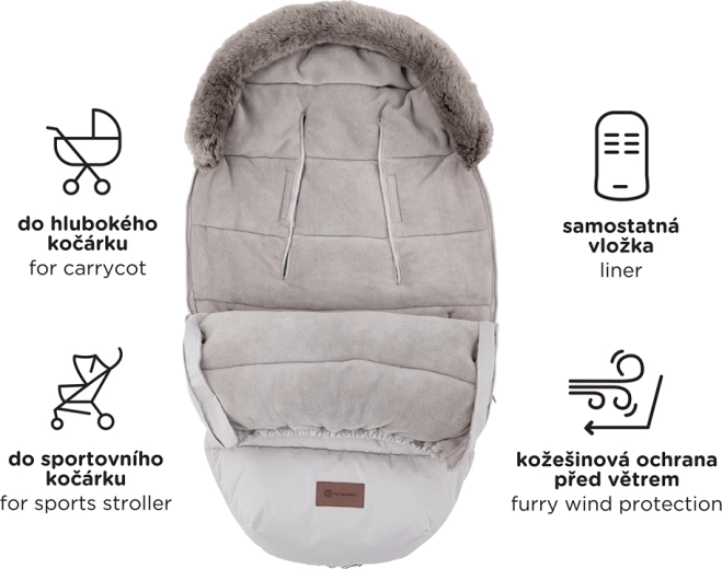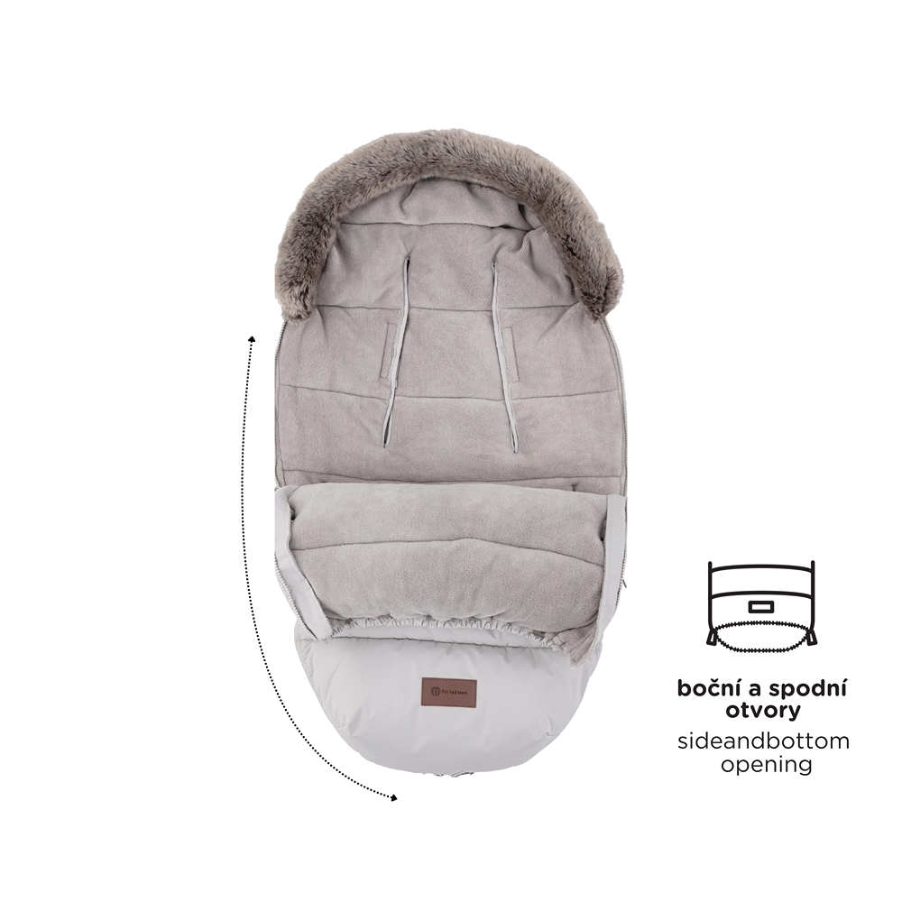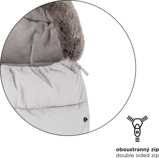 A praktikus, teljes hosszában futó cipzárok lehetővé teszik a felső rész teljes lecipzározását, a szellőzést és az alsó részből önálló betét kialakítását. Az alsó részen a cipzárak praktikus lábnyílást hoznak létre. Az okos, ívelt, csúszásgátló hátsó zseb segít a bundazsákot stabilan a helyén tartani, a levehető műszőrme pedig megkönnyíti a tisztítást.