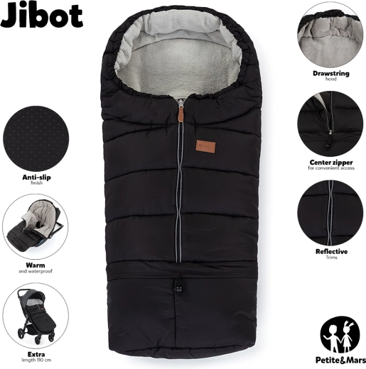 A Fusak 3 az 1-ben PETITE&MARS Jibot Horizontal Ink Black a születéstől kb. 3 éves korig maximális kényelmet nyújt. A 1000 mm vízoszlopú, vízlepergető és szélálló külső rétegnek és a puha polár bélésnek köszönhetően gyermekét rossz időben is melegen és szárazon tartja. A vízszintes övnyílások lehetővé teszik az övek könnyű befűzését azok szétkapcsolása nélkül, ami növeli a kompatibilitást különböző márkájú babakocsikkal és autósülésekkel.