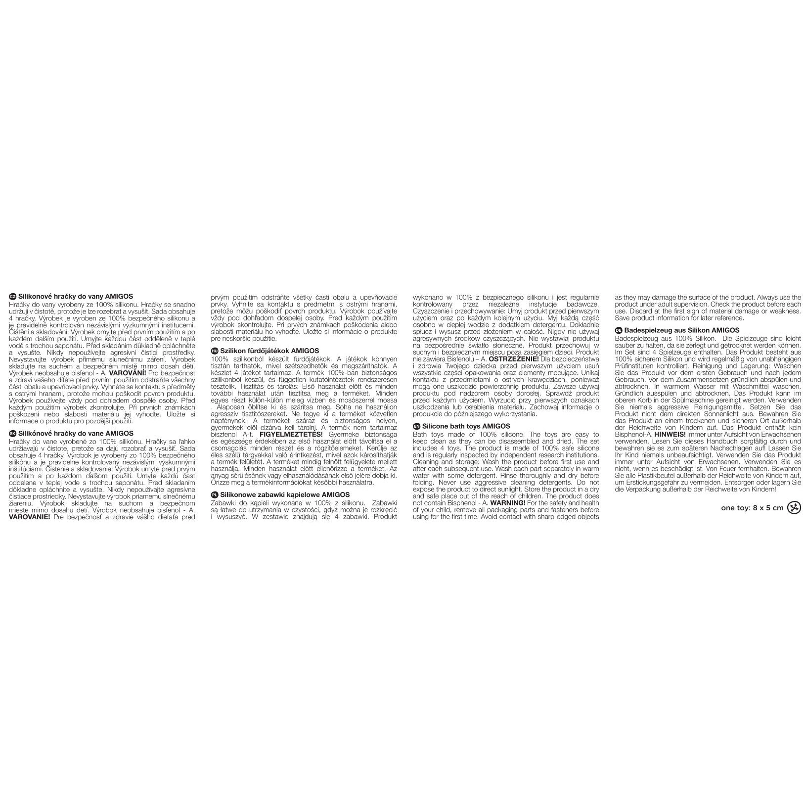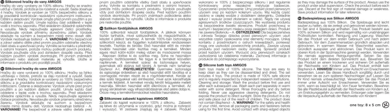 A két részből álló, praktikus kialakítás (felső és alsó rész) lehetővé teszi, hogy fürdés után a játékok szétszedhetők, alaposan elmoshatók és megszáríthatók legyenek – maradék víz nélkül. Kompakt méretüknek köszönhetően tökéletesek a kádba, medencébe és utazáshoz.