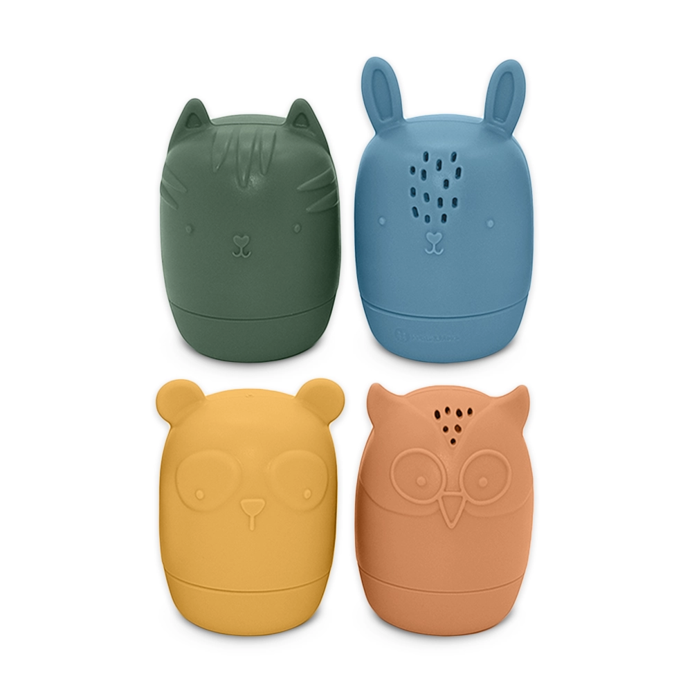Fedezze fel a bájos Petite&Mars Amigos szilikon vízijátékokat – négy állatfigurából álló készletet (bagoly, nyuszi, cica és panda), amelyeket a gyerekek imádni fognak. Puhák, pehelykönnyűek, és 100% élelmiszeripari minőségű, BPA-mentes szilikonból készülnek. Az öntéshez és spricceléshez kialakított nyílásoknak köszönhetően a fürdés szórakoztató, érzékszervi játékká válik, miközben fejleszti a finommotorikát. Könnyen szétszedhetők és tisztíthatók – ideálisak a fürdőkádba, medencébe és utazáshoz is.