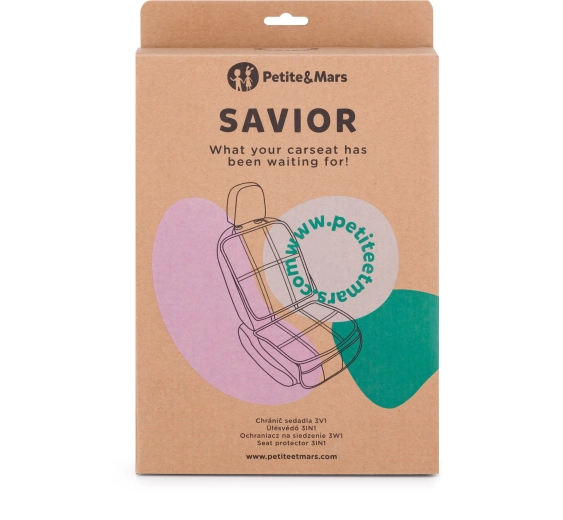A Petite&Mars Savior 3 az 1-ben autóülés-védő univerzális kiegészítő minden családi autóba. Megbízhatóan véd az üléskárpit kopásától, a gyerekülés okozta benyomódásoktól, a kiömlésektől és a gyerekcipők okozta szennyeződésektől. Emellett praktikus rendszerezőt kínál zsebekkel, így a gyerekek mindent kéznél tartanak, az autó pedig rendezett marad.
