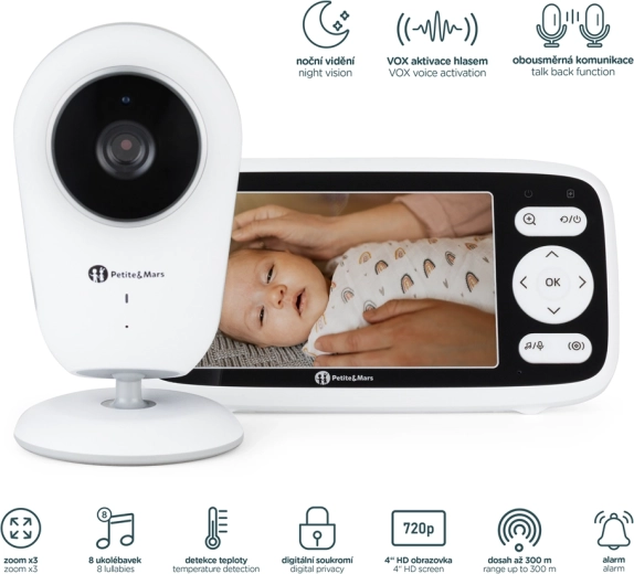 A 4"-os, 720p felbontású LCD kijelzőn minden részletet láthat. A fejlett éjjellátás teljes sötétben is tiszta képet nyújt, így a babát bármikor szemmel tarthatja.