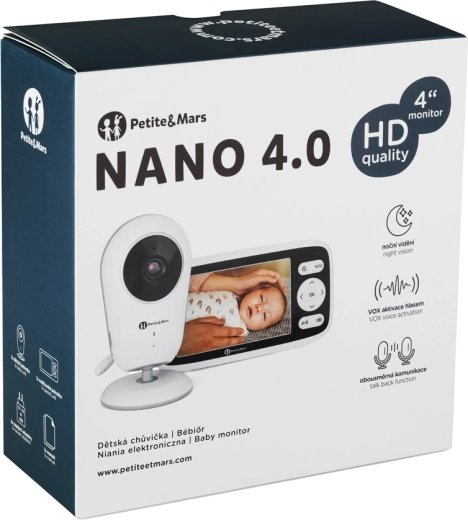 Figyelje kisbabáját teljes nyugalomban. A Nano 4.0 a 4" HD kijelzőt (720p) éjjellátással kombinálja a tiszta képért nappal és éjjel. A 3×‑os digitális zoom közel hoz minden részletet a baba álmának megzavarása nélkül, az akár 300 m hatótáv pedig lehetővé teszi a szabad mozgást a házban és a kertben kapcsolatvesztés nélkül.
