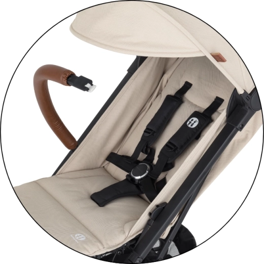 Fedezd fel a világot a Petite&Mars FLY babakocsival az időtlen Sahara Beige árnyalatban. Ez a könnyű, jól pakolható sportkocsi a gyermek és a szülők kényelmére készült: a rugózott, teljesen forgó első kerekektől a teljesen vízszintesig dönthető háttámláig és az állítható lábtartóig. Az integrált mágnescsatos, 5 pontos öv növeli a biztonságot és megkönnyíti a bekapcsolást.