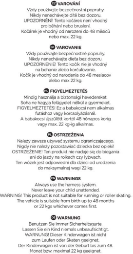 A babakocsi könnyen kompakt méretre csukható, összecsukva önállóan megáll, és alacsony tömegének köszönhetően az integrált fogantyúval kényelmesen hordozható. Ideális választás utazáshoz, városi sétákhoz és mindennapi használatra.
