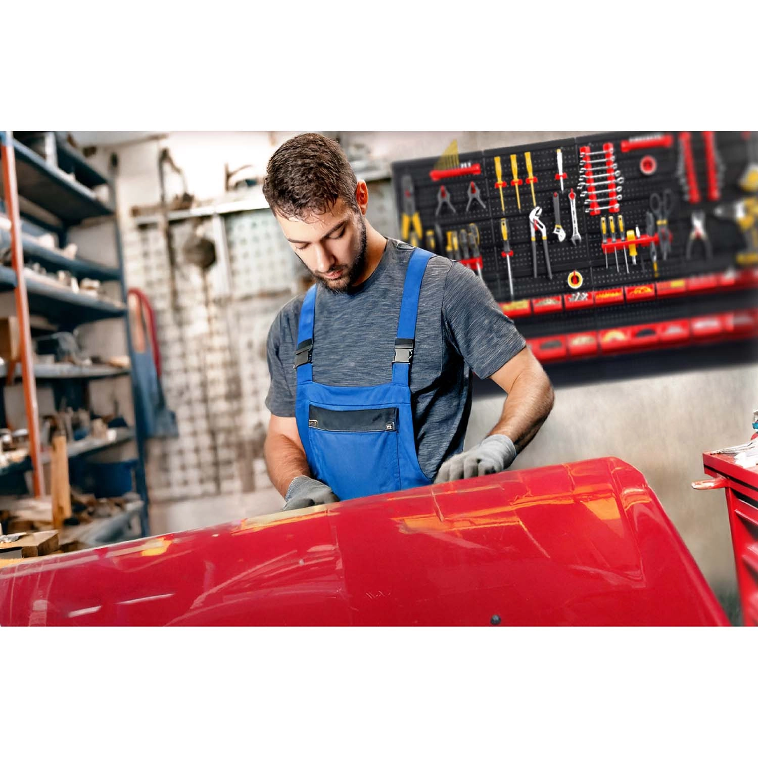 Tegyen rendet a műhelyben egyszer s mindenkorra. A 128 × 76 cm-es moduláris HUMBERG fali panel 6 perforált táblát és összesen 54 kiegészítőt (tárolódobozok, horgok, polcok és tartók) kínál a szerszámok és apró kötőelemek áttekinthető rendszerezéséhez. Masszív, megerősített műanyag kivitel, szabadon variálható tartozékelrendezés és egyszerű szerelés a mellékelt tiplikkel – maximális rugalmasság professzionális szervizben és otthoni garázsban egyaránt.