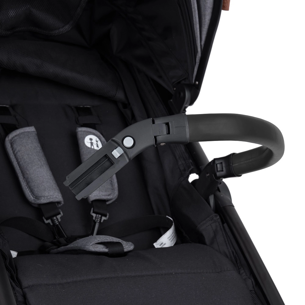 A szülők értékelni fogják a gyors, egykezes összecsukást, a magasságban állítható, eko-bőrrel borított tolókart és a tágas bevásárló kosarat. A gyermek kényelméről nagy háttámla, szinte vízszintesig dönthető háttámla és lábtartó, valamint az ötpontos biztonsági öv gondoskodik. A jobb szellőzésért a háttámla hátsó részén háló található, nem hiányzik a praktikus zseb sem az apróságoknak.