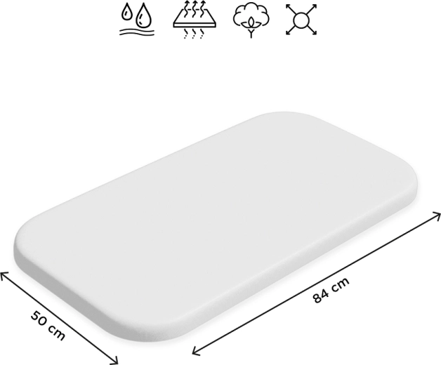 Praktikus és kényelmes gumis lepedő babáknak, 84 × 50 cm méretben. A vízálló rétegnek köszönhetően védi a matracot a nedvességtől, a puha pamut jersey kellemes tapintású és légáteresztő. A körben gumírozott szegélynek hála stabilan illeszkedik a matracra, és akár 95 °C-on mosható a maximális higiénia érdekében.