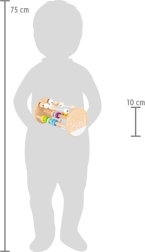 Ez a minőségi, szivárvány színekben pompázó fa henger 12 hónapos kortól végtelen felfedezési lehetőséget kínál. A színes gyöngyök kanyargós és egyenes pályákon mozognak, fejlesztve a kéz–szem koordinációt és a logikus gondolkodást. Rázásra kellemesen csörög, és érzékszervi élményt nyújt.