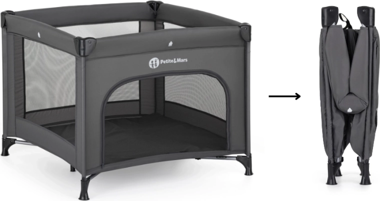 A PETITE&MARS Nook Urban utazó járóka ideális választás azoknak a szülőknek, akik szeretnék gyermeküket mindig biztonságban és szem előtt tudni. A stabil szerkezet és a légáteresztő hálós oldalfalak kényelmes, jól átlátható környezetet teremtenek a mindennapos használathoz otthon és útközben egyaránt. A kompakt csomagolásnak és a hordtáskának köszönhetően könnyen magával viheti bárhová.