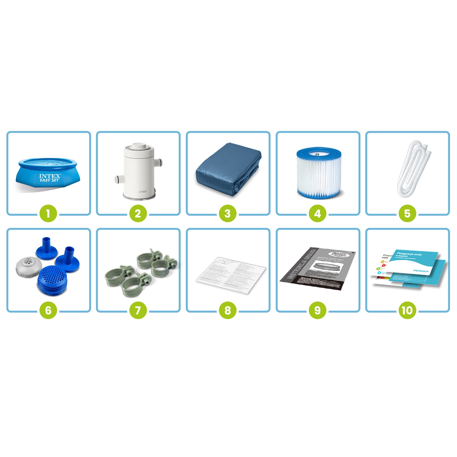 - Komplett 4 az 1-ben szett – medence, szivattyú, takaró, szűrő + tartozékok.