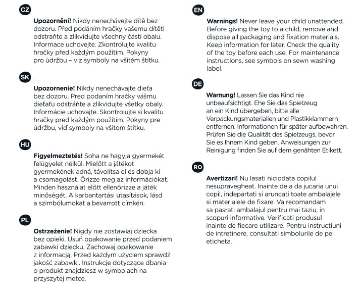 - Születéstől biztonságos: puha anyagok, hímzett részletek.