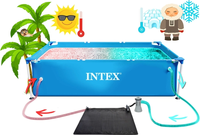 Az INTEX napelemes fűtőszőnyeg a napsugárzást használja fel a víz fokozatos felmelegítéséhez, amely a szőnyeg belsejében futó spirális csatornákon áramlik át. Masszív PVC kivitelének köszönhetően tartós és könnyen mozgatható. A szűrőszivattyúhoz való csatlakoztatás pillanatok kérdése – a szőnyeg adapterekkel és gyorscsatlakozókkal érkezik, így a telepítés egyszerű és szerszámmentes.