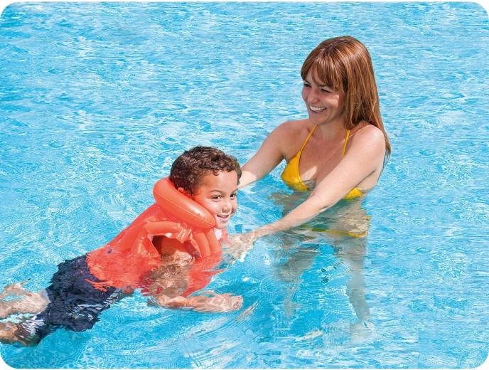 Alacsony tömegének és strapabíró anyagának köszönhetően ideális medencébe, tóhoz és nyaraláshoz is. Az állítható pántok pontos illesztést tesznek lehetővé 3–6 éves gyermekek számára, legfeljebb 30 kg teherbírással.