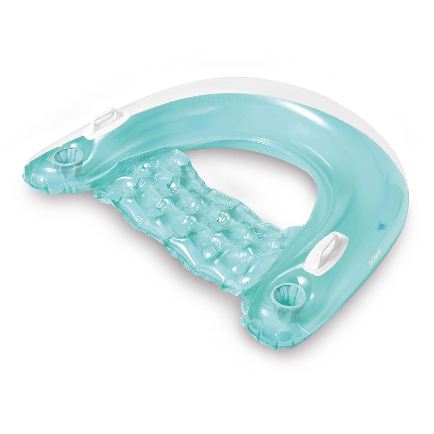 Az INTEX felfújható karosszék 147 × 99 cm-es méretben a kényelmes vízi relaxálásra készült. A nyárias, áttetsző dizájn türkiz/narancs változatban, a kellemes háttámla és a buborékosan texturált ülőfelület kényelmesen a víz felszíne felett tartja a tested. A két beépített pohártartó gondoskodik róla, hogy a hűs ital mindig kéznél legyen.
