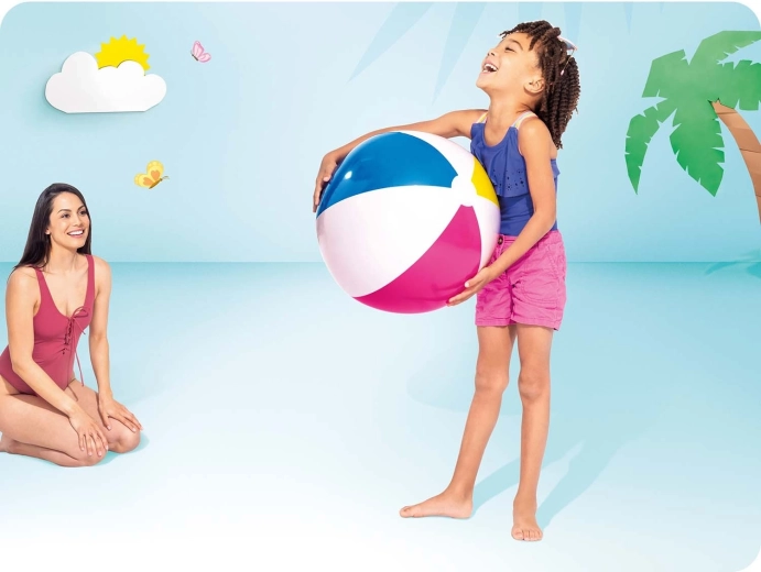 Dobd fel a nyarat az Intex színes, 61 cm átmérőjű felfújható labdájával! Ideális a strandra, a medencéhez és a kertbe is, és az ellenálló PVC-nek köszönhetően rengeteg játékot kibír. A könnyű, színes és strapabíró labda 3 éves kortól örömet okoz a gyerekeknek, és hosszú órákon át gondoskodik az aktív szórakozásról vízben és szárazföldön egyaránt.