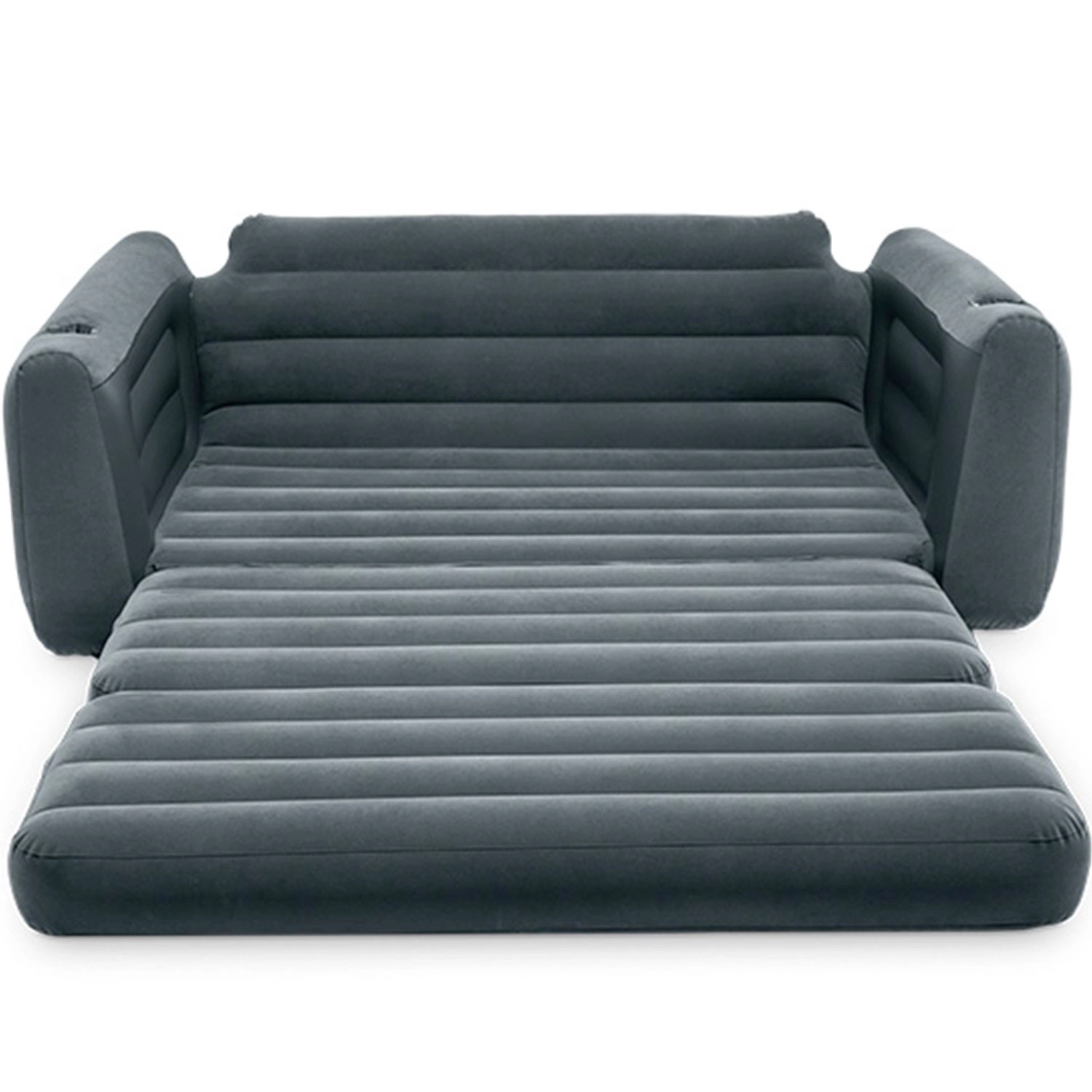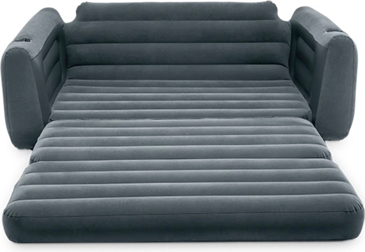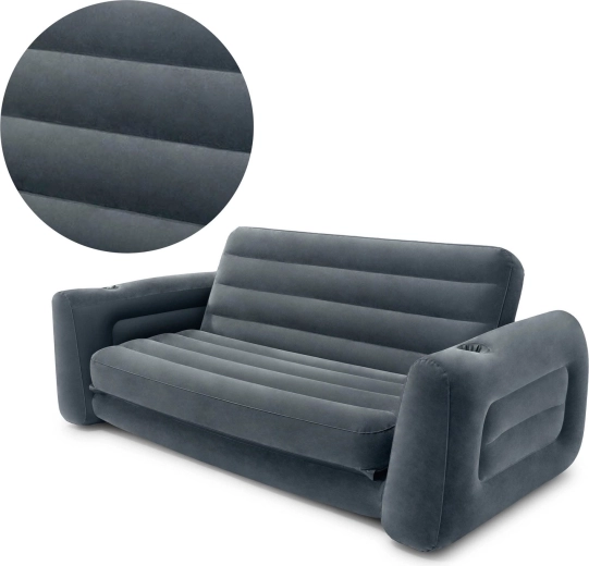 Az INTEX 2 az 1-ben felfújható kanapéja a kényelmes ülést teljes értékű fekhellyel ötvözi. A magas háttámla és az masszív karfák stabilitást és kellemes támaszt biztosítanak hátfájás nélkül. A velúr felület puha tapintású, ugyanakkor tartós és könnyen tisztítható – elég egy nedves kendővel áttörölni.