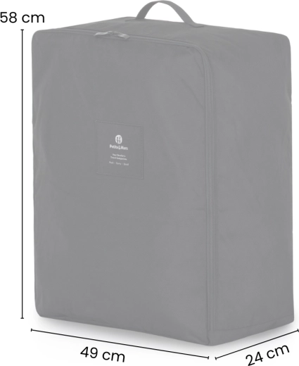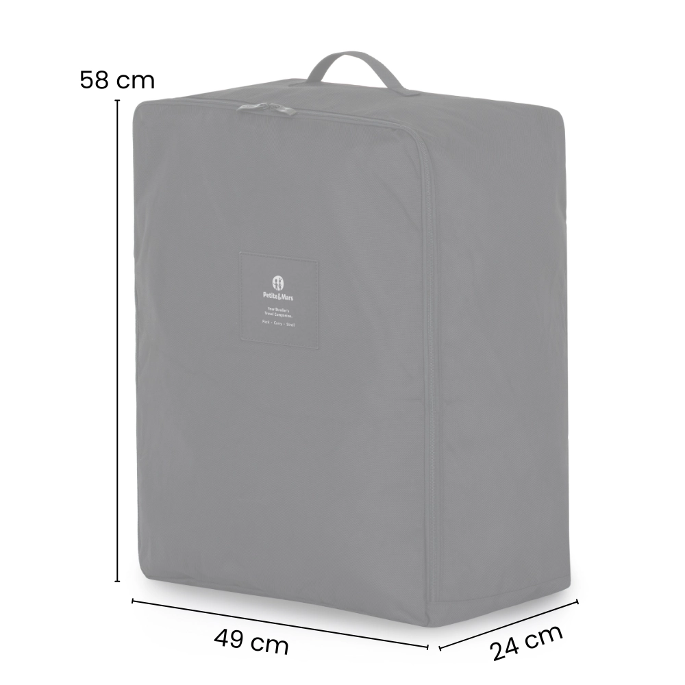 A praktikus PETITE&MARS Carrie Black szállítótáska megbízhatóan megóvja babakocsiját a karcolásoktól, nedvességtől és szennyeződésektől. A strapabíró textilanyag, a teljes hosszban futó cipzár és a kézben vagy háton kényelmes hordhatóság révén ideális utazáshoz és tároláshoz is.