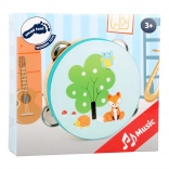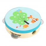 A tamburint állatfigurák, például róka, sün és bagoly díszítik, ami különösen vonzóvá teszi a gyerekek számára.
